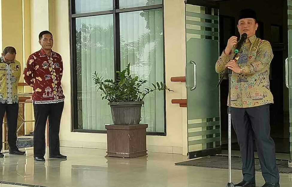 Sekda Lampung Timur Syahrudin Putera, memberikan arahan kepada ASN saat apel rutin harian./Rusman AliSekda Lampung Timur Syahrudin Putera, memberikan arahan kepada ASN saat apel rutin harian./Rusman Ali