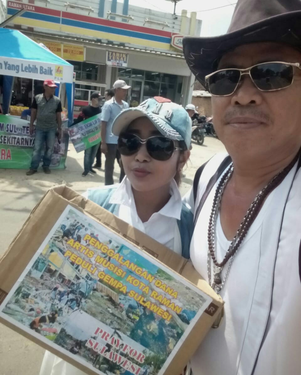 Gerbang1news.com – Puluhan musisi lokal di Kabupaten Lampung Timur menggoyang dan menghibur pengunjung disekitaran Pasar Taman Utara. Hiburan yang dilakukan dibawah terik sinar matahari tersebut dilakukan para pelaku seni untuk menggalang dana peduli korban gempa dan tsunami di Palu, Sigi, Donggala Sulawesi Tengah (Sulteng).