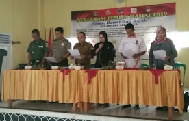 Gerbang1news.com – Jelang Pemilu pada 2019 mendatang. Polsek Sukadana bersama Panitia Pengawas Pemilu Kecamatan (Panwaslucam) setempat menggelar deklarasi damai Pemilihan Umum (Pemilu) tahun 2019 yang aman, damai dan sejuk di Kecamatan Sukadana.