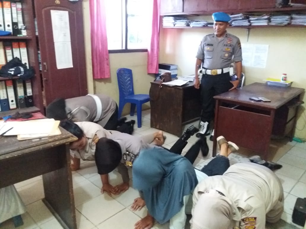 “Kepada ke 5 personel tersebut langsung diberikan tindakan disiplin berupa push up sebanyak 20 kali dan pemotongan rambut oleh polwan senior,” ungkapnya, Selasa (2/4/20).