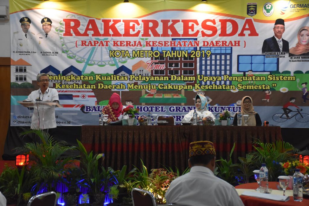 “Ditengah meningkatnya penyebaran fasilitas pelayanan kesehatan, bertambahnya jumlah dan kompetensi tenaga kesehatan serta distribusi obat yang terus diperbaiki. Ayo, tingkatkan kinerja pelayanan kesahatan kepada masyarakat,” kata Nasir, mewakili Walikota Metro Achmad Pairin saat menghadiri Rapat Kerja Kesehatan Daerah (Rakerkesda) yang diselenggarakan Dinas Kesehatan Kota Metro, Kamis (25/4/2019).