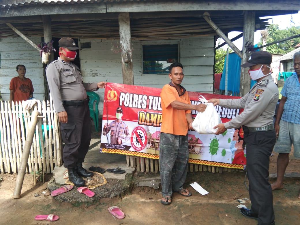Gerbang1news.com, Tulang Bawang – Satuan Pembinaan Masyarakat (Satbinmas) Polres Tulang Bawang membagikan paket kebutuhan pokok sembako kepada warga terdampak pandemi Covid-19