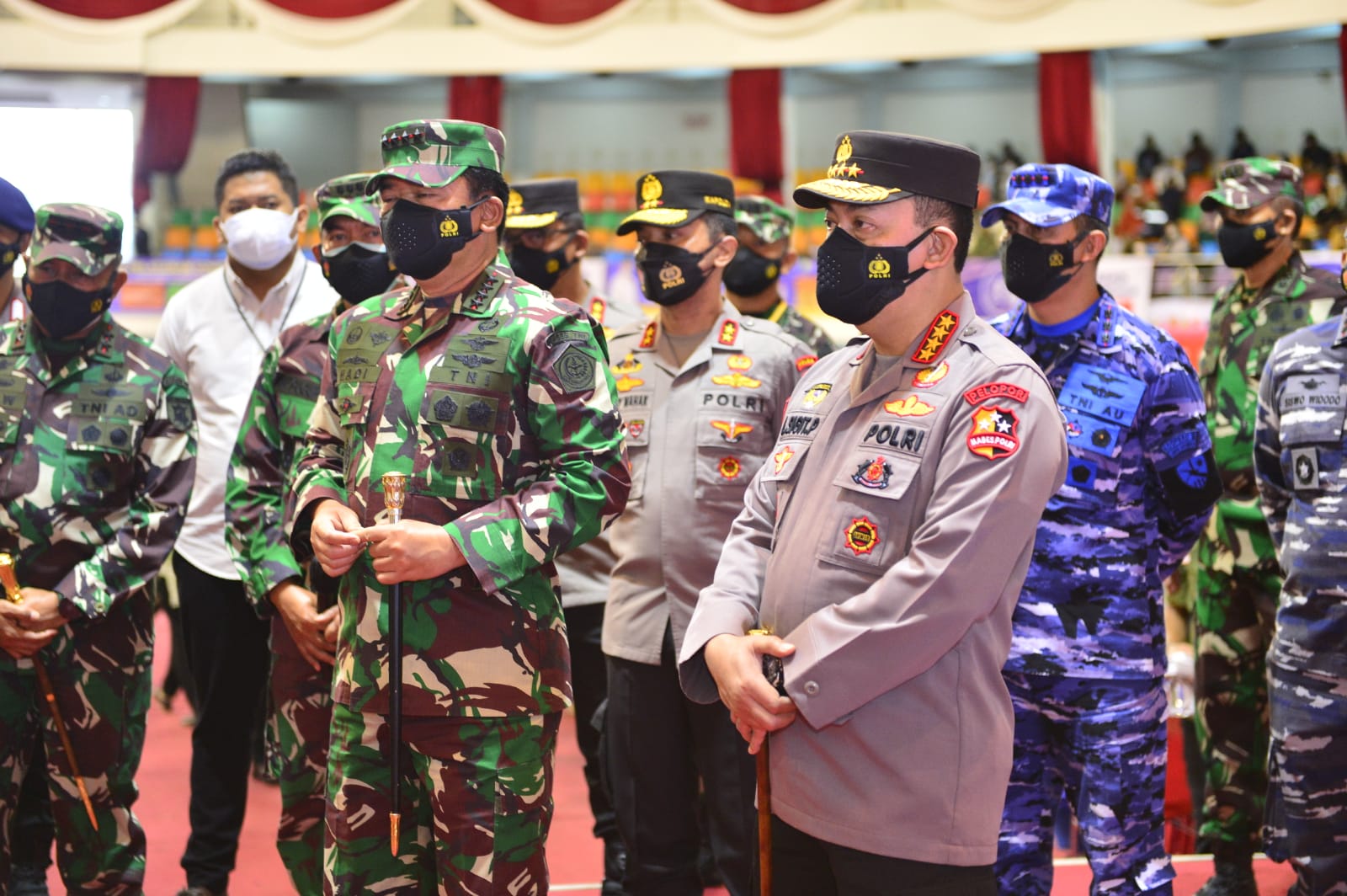 Gerbang1news.com, Kalimantan Timur – Panglima TNI Marsekal Hadi Tjahjanto bersama Kapolri Jenderal Listyo Sigit Prabowo meninjau program vaksinasi massal di BSCC DOME Balikpapan, Kalimantan Timur, Jumat, (6/8/2021).