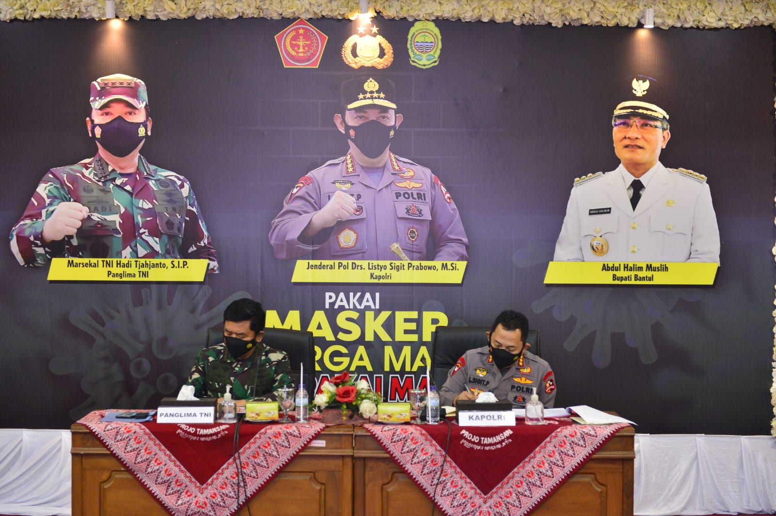 Gerbang1news.com, Yogyakarta – Panglima TNI Marsekal Hadi Tjahjanto bersama Kapolri Jenderal Listyo Sigit Prabowo memimpin rapat penanganan dan pengendalian Covid-19 bersama dengan Forkopimda Bantul dan Sleman, Daerah Istimewa Yogyakarta (DIY), Minggu (8/8/2021).
