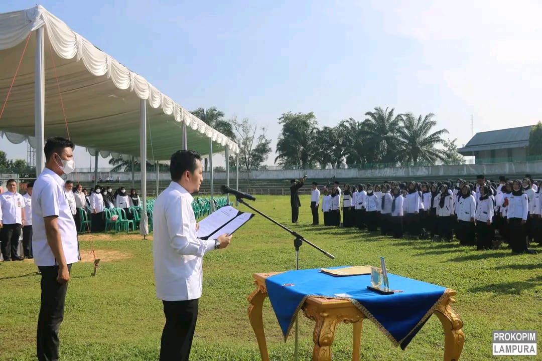 Wakil Bupati Lampung Utara Ardian Saputra, membacakan pengantar sumpah dilanjutkan dengan pembacaan sumpah, diikuti oleh seluruh PPPK Lampura anggaran tahun 2021.