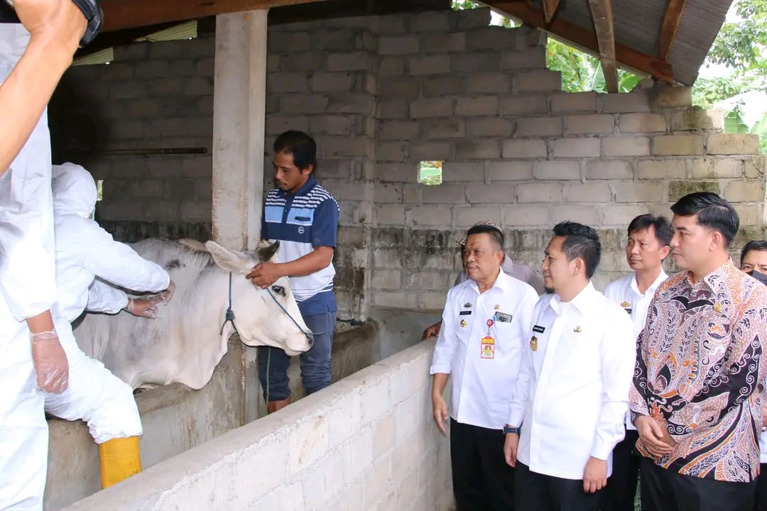 Wakil Bupati, Adrian Saputra meninjau hewan ternak yang akan diberi vaksin PMK./Saparudin