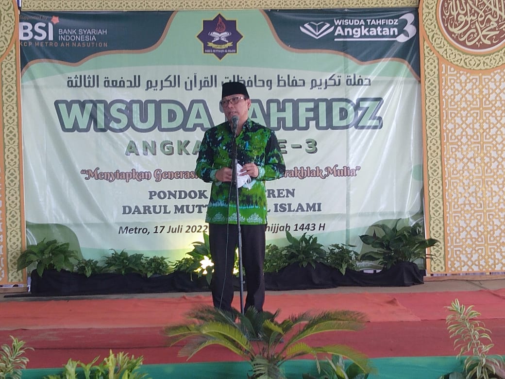 Walikota Metro, Wahdi Siradjuddin mengucapkan selamat kepada ratusan siswa dan siswi yang sudah di wisuda menjadi Tahfidz.