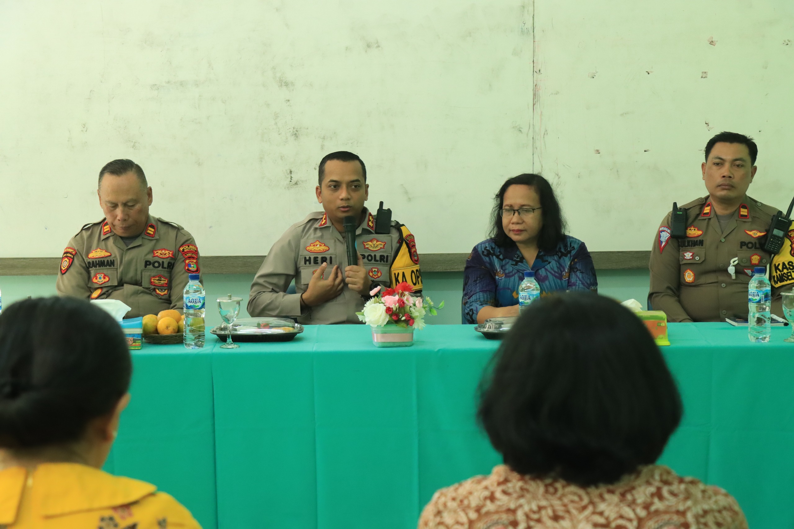 Gerbang1newscom.”Polres Metro Polda Lampung – Sebagai upaya untuk menyerap secara langsung keluhan dari masyarakat, Kapolres Metro Polda Lampung AKBP Heri Sulistyo Nugroho S.IK, M.IK menggelar kegiatan ‘Jumat Curhat dengan masyarakat. Kali ini sasarannya guru SMP Xaverius Kota Metro dengan membahas perihal penanggulangan kenakalan remaja.