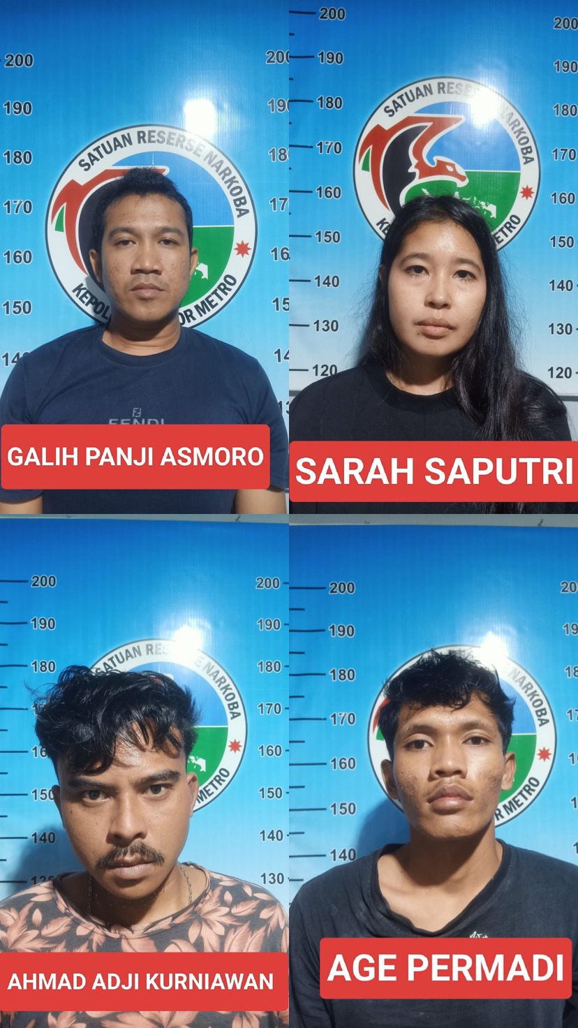 Gerbang1news.com_METRO – Satuan Reserse Narkoba Polres Metro menangkap empat orang penyalahguna narkoba jenis sabu-sabu. Yang mana seorang diantaranya merupakan oknum anggota Satuan Polisi Pamong Praja (SatPol-PP) yang bertugas menjaga rumah dinas Wakil Walikota Metro, Qomaru Zaman.