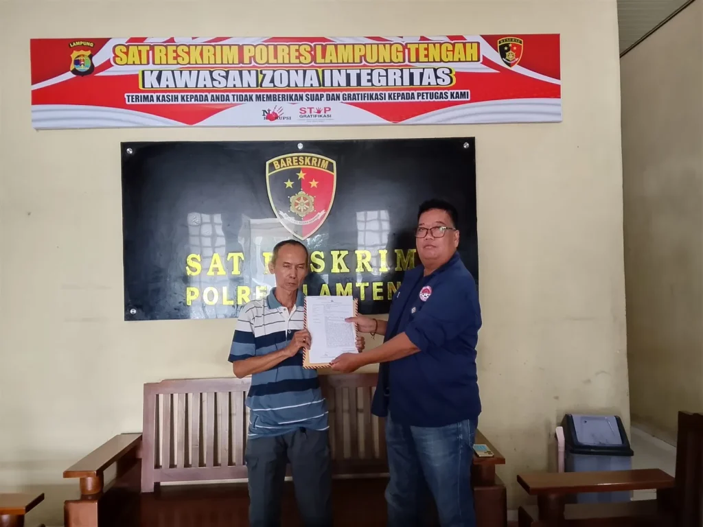 Ketua Lembaga Bantuan Hukum (LBH) Merah Putih kota Metro Hermansyah, TR, SH, dampingi pelaporan dugaan tindak pidana penipuan dan/atau penggelapan penjualan satu unit timbangan truk digital senilai Rp55 juta ke Polres Lampung Tengah. Laporan pengaduan tersebut ditujukan kepada Kapolres Lampung Tengah Cq Kasat Reskrim Polres Lampung Tengah, dan telah diterima sebagaimana tertuang dalam bukti penerimaan laporan pengaduan tertanggal 27 Februari 2026 di Gunung Sugih.